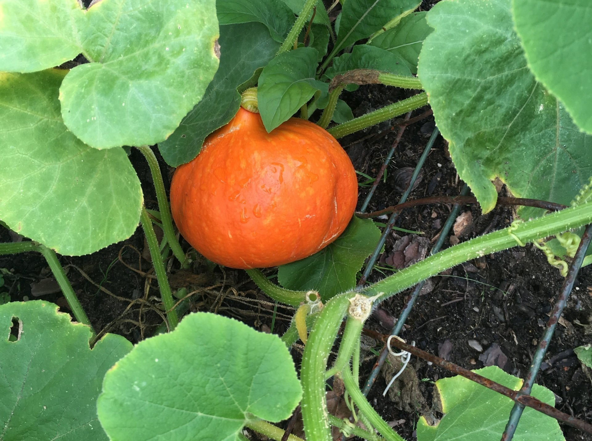 Den ersten Hokkaido-Kürbis konnten wir schon im August ernten. Seit der Pflanzung faszinierte uns diese tolle Rankpflanze, die in drei Richtungen wachsen wollte. Die Ranken rollen um alles, was sich ihnen anbietet, dünne hellgrüne Halteschlingen. So schafft die Pflanze es ebenso wie Gurkenpflanzen, einen richtig schweren Kürbis an einem Gartenzaun in der Höhe „auszutragen“ :-). Eine Kürbischremesuppe mit zum Beispiel Kartoffeln, Möhren und Ingwer habt Ihr bestimmt schon einmal probiert. Wir haben den vorletzten Hokkaido auch in einem leckeren Salat gegessen, dafür wurde er in Stücken im Backofen mit etwas Rapsöl gebacken. Das war auch richtig lecker!
